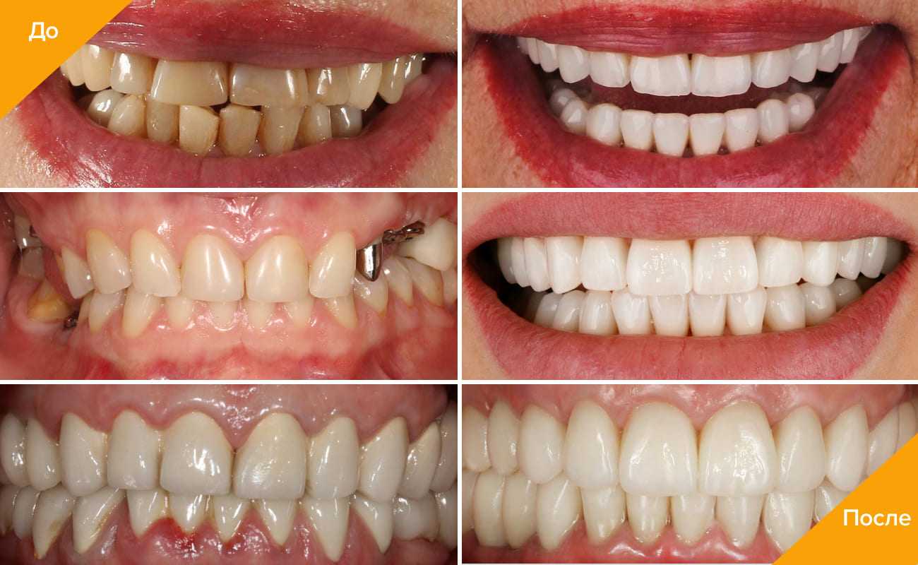Фото до и после установки керамических коронок в НИЦ. Работы Карнеева А.Н
