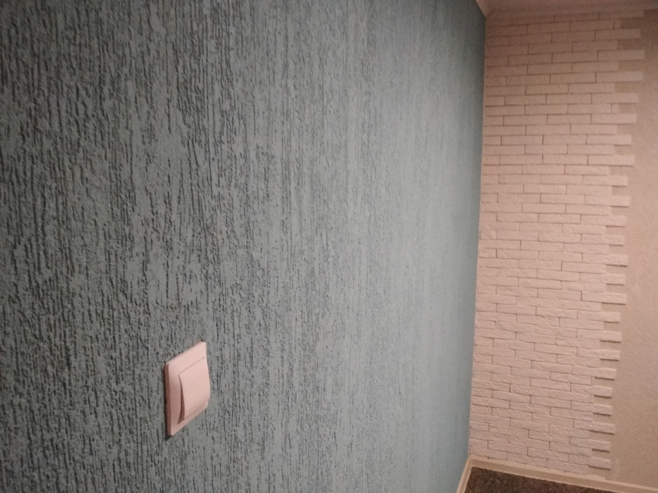 Стены не выравнивали, ничем не покрывали. Обои хорошо ложатся как на гладкую, так и на шершавую поверхность. Чем я только не наносила их и гладилкой и шпателем, но удобнее всего тканевым валиком. (Если масса отваливается и не хочет прилепать, значит стоит добавить немного ПВА) Слой нанесения от 2мм до 1см.