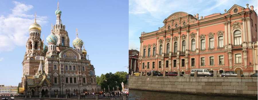 В новых эклектичных зданиях уже не акцентируется центр и стирается симметрия. Два здания были построены по обе стороны Исаакиевской площади в Санкт-Петербурге в 1844 и 1853 годах. План был составлен Николаем Ефимовым (ru) (1799-1851). Здесь пока еще не смешение стилей (хотя фасады смоделированы по мотивам итальянского Возрождения), а строгие формы, характерные для эклектики. Планы просты, три регистра почти равны, столбцы образуют безмятежное повторение без отмеченного центра.