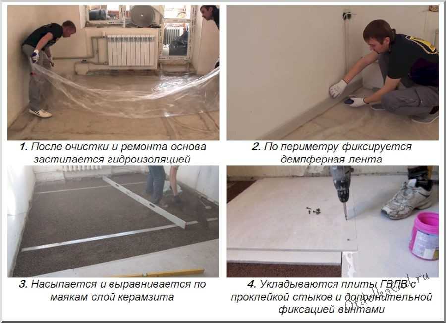Сухая стяжка на основе керамзита считается наиболее распространенным способом устройства настила из ГВЛВ