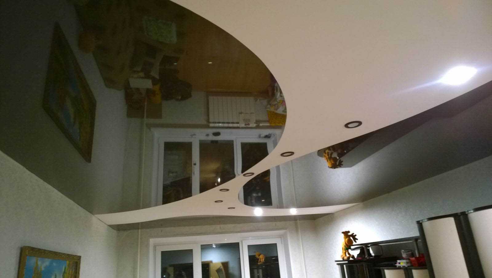 - соблюдение цветового баланса в интерьере — когда у вас на потолочной поверхности сразу 2 цвета, гораздо легче подбирать в помещение мебель, оформлять стены, пол и расставлять аксессуары.