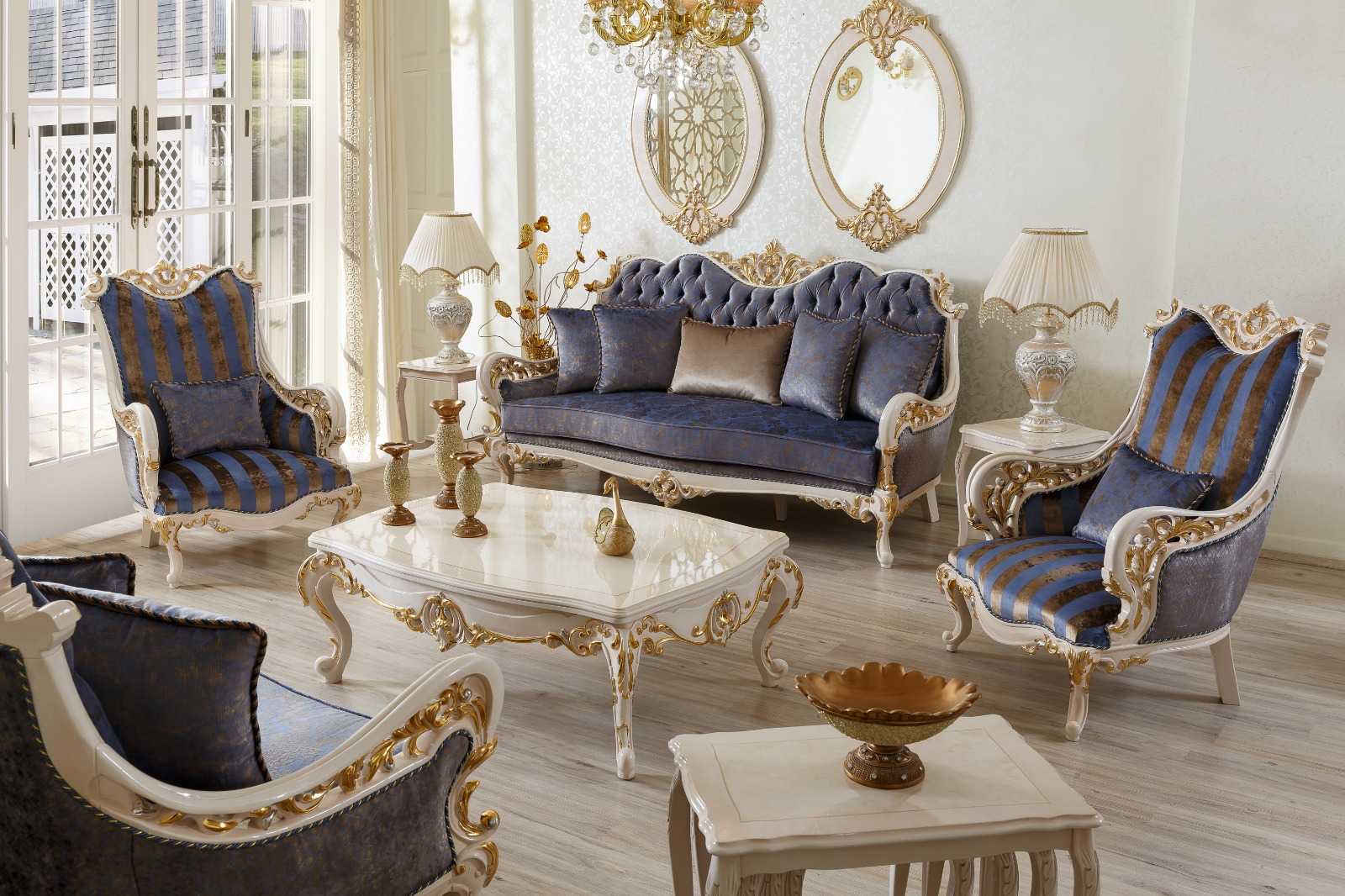 Дизайн гостиной в стиле барокко, для своего полноценного воплощения, требует много пространства. Гостиная в стиле барокко заставляется гарнитуром: несколько предметов мебели, гармонирующих между собой. Двустворчатый шкаф, комод, диваны и кресла массивны, и до предела насыщены деталями, обиты дорогой тканью. В помещении также обязательно наличие аксессуаров: вазы, статуэтки, зеркала в позолоченной раме. Ковры на полу — уместное дополнение к интерьеру, это, в основном, тканевые безворсовые изделия.