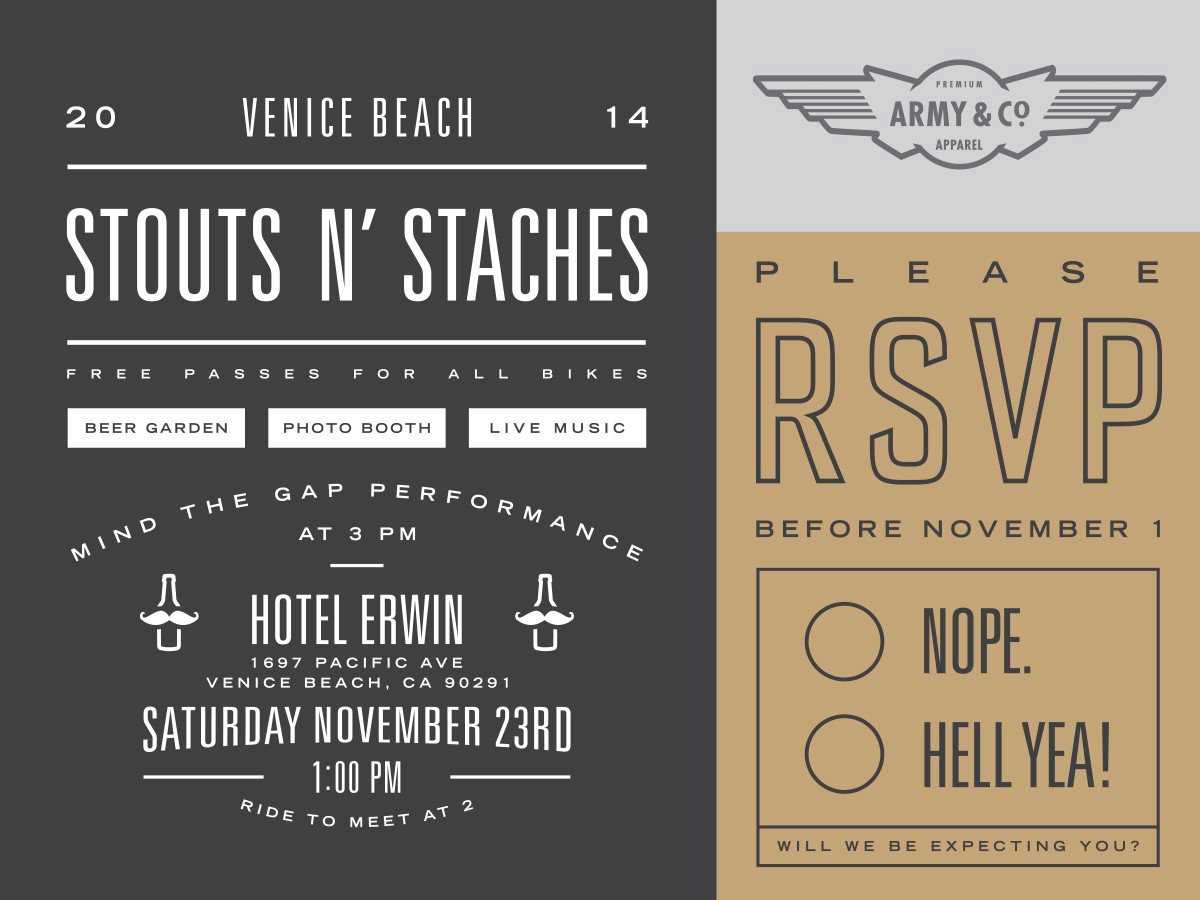 В дизайне ниже прослеживается четкая иерархия: ее создают как секции, так и белое пространство. В левой части наиболее важная информация — дата и место проведения события — выделяется за счет расположения и размера слов. Расстояния между элементами согласованы, и дизайн не выглядит перегруженным: информацию достаточно просто прочитать. Разные цвета фона делят дизайн на четкие секции, у каждой из которых свое назначение: основная информация, логотип спонсора и форма RSVP.