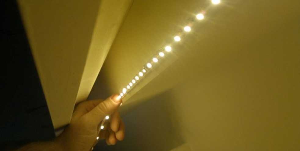 Крепление светодиодной ленты на потолок в карниз из гипсокартона