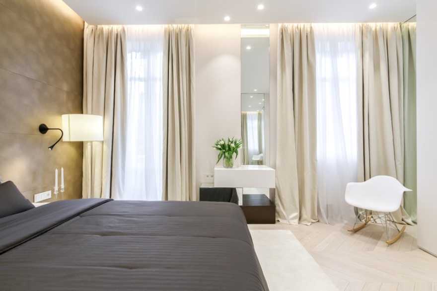 Подбирать освещение стоит с учетом штор для создания комплексного эффекта