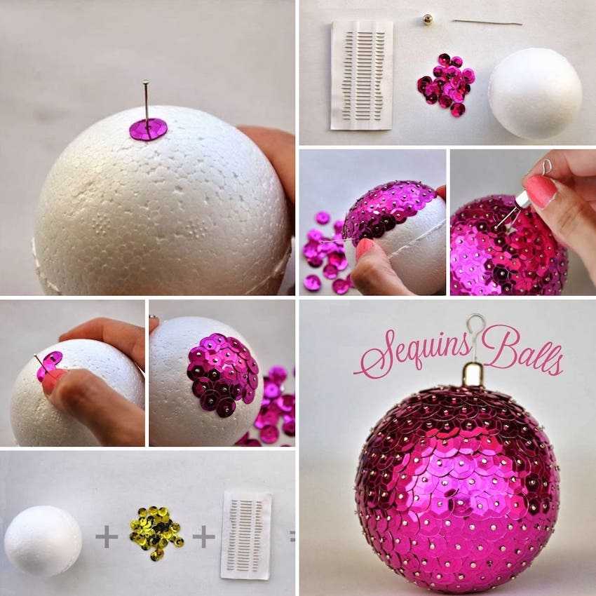 Для декора новогодних шаров можно использовать абсолютно любые украшения