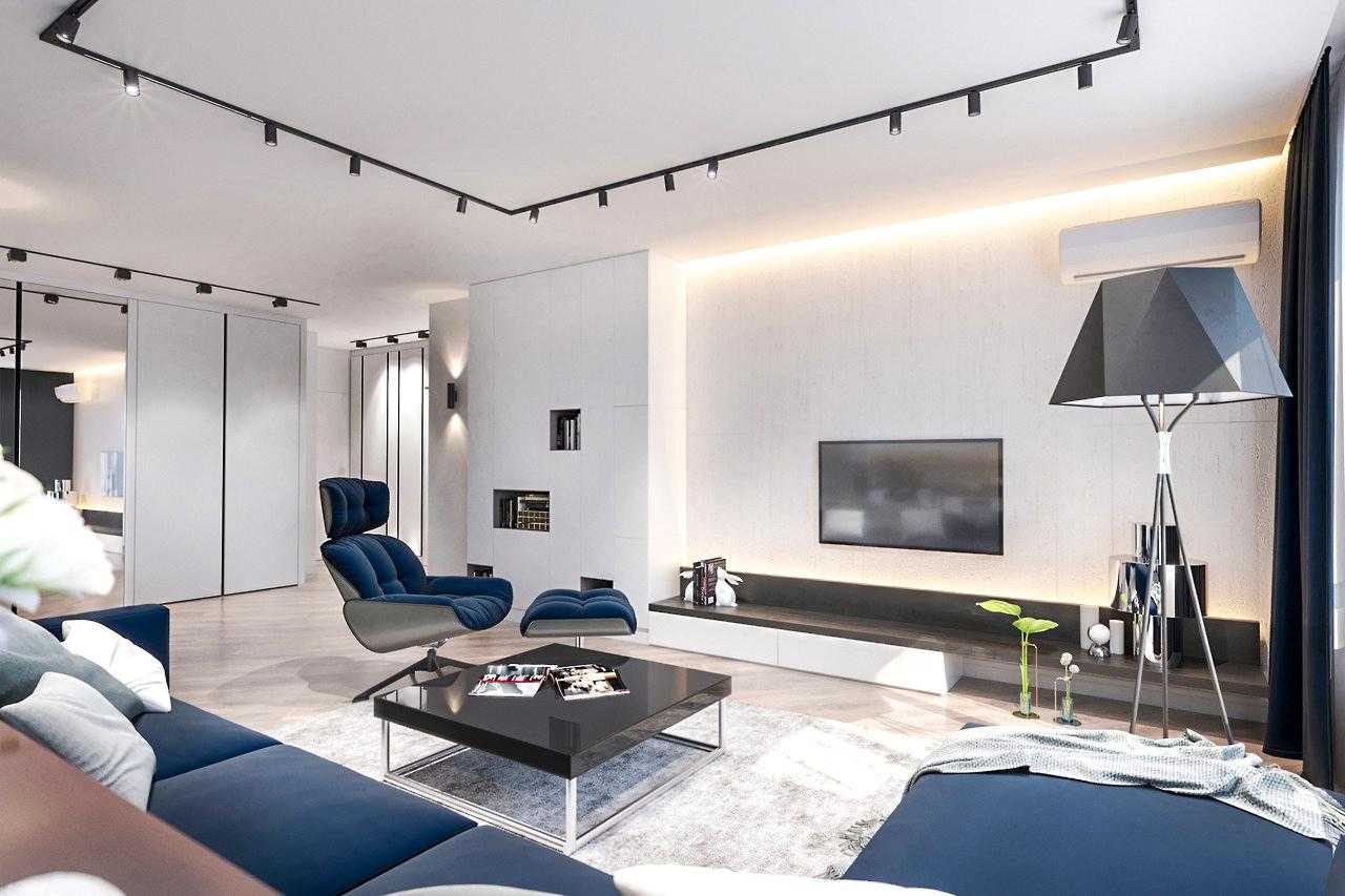 Комбинированное освещение с использованием трековых светильников в дизайне гостиной