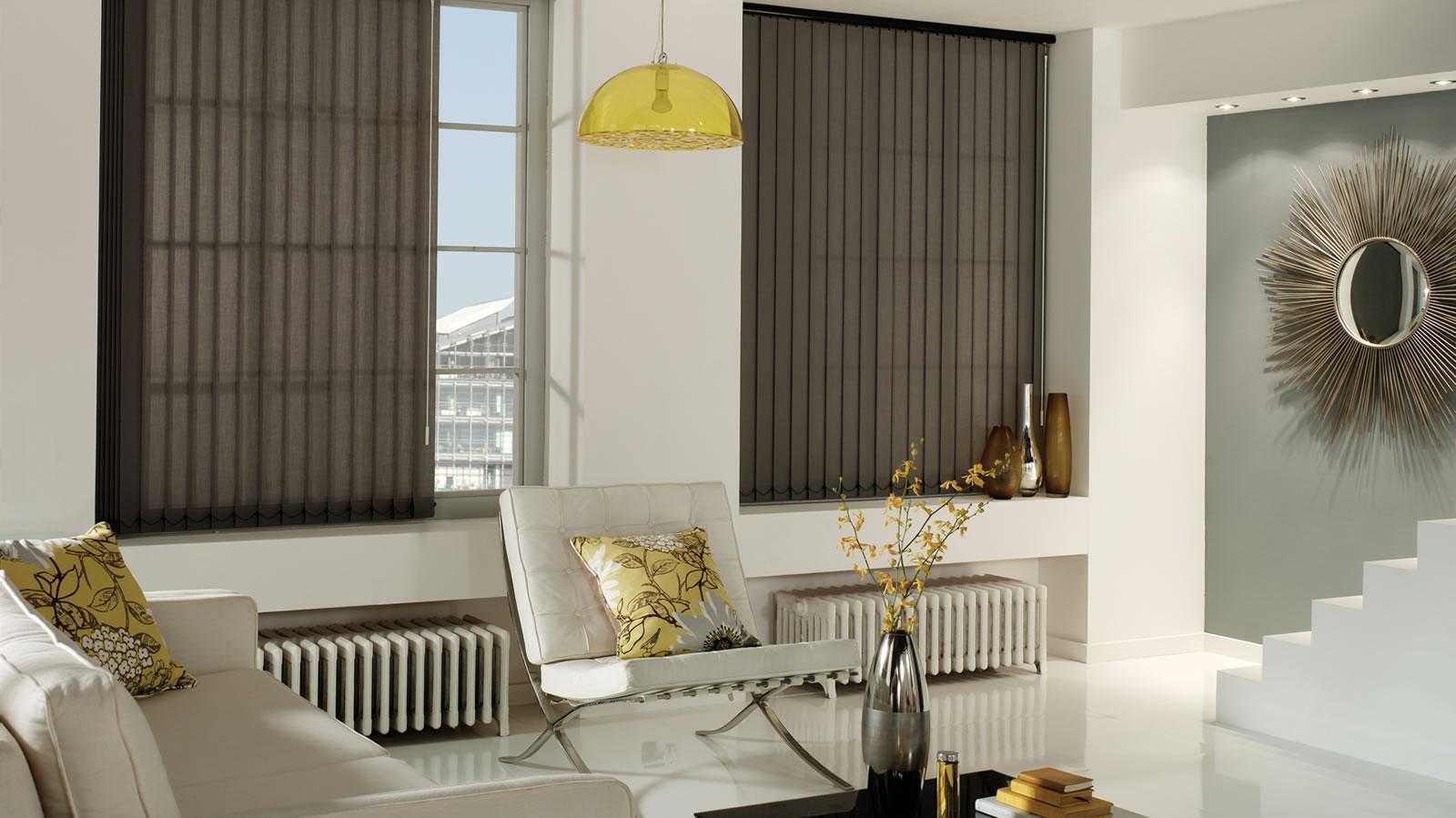 Вертикальные тканевые жалюзи в дизайне гостиной