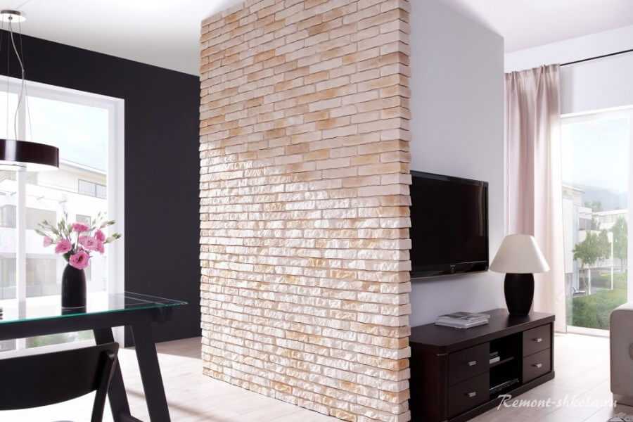 - облицовки отдельных стен, выступающих в интерьере в качестве полноценного элемента декора;