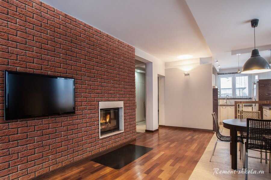 - укладка гипсового кирпича часто используется в качестве фона для акцентирования внимания не стене, где расположен камин, картины или же телевизор;