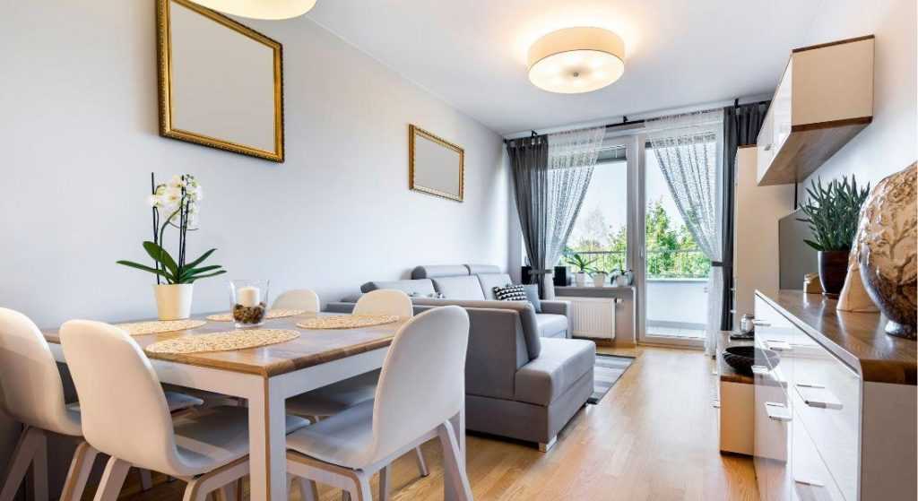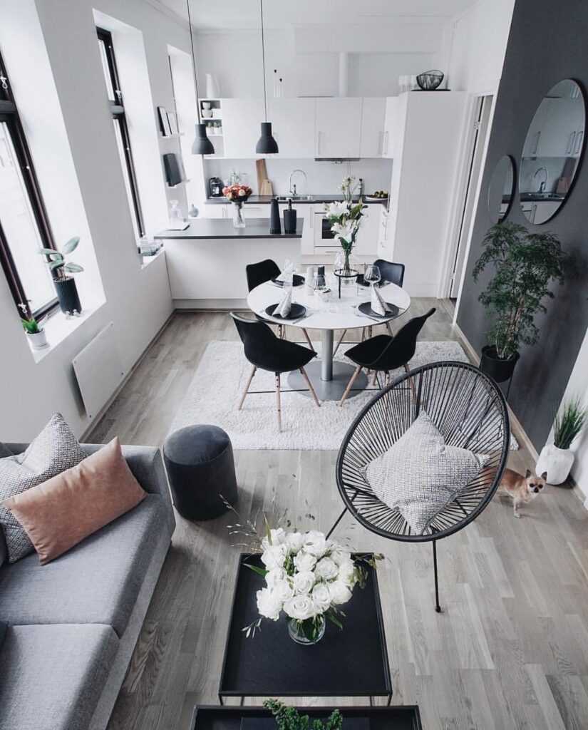- Роль освещения. Использование различных типов ламп или даже лампочек позволит визуально выделить отдельные комнаты. Помните, что на кухне должно быть немного больше света, чтобы облегчить приготовление блюд. В гостиной поставьте атмосферные приглушенные лампы, способствующие расслаблению. Модный подвесной светильник над кухонным островом создаст неповторимое пространство!