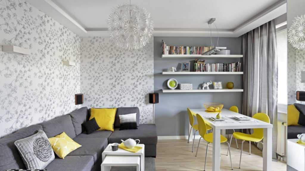 В зоне гостиной важно создать расслабляющую обстановку, поэтому для неё выбирают более дорогие материалы: паркет, ламинат, ковры. Для кухни нужны материалы, поддающиеся частому уходу: плитка, керамогранит. Дизайн с акцентной стенойИсточник design-homes.ru В итальянском стилеИсточник арт-интерьер.москва