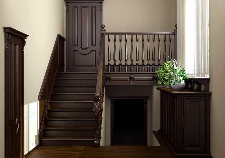 Классический. Такой интерьер говорит о статусности, элитарности, элегантности и роскоши. Лестницы в классическом стиле — это обычно массивные и просторные двухмаршевые конструкции из благородных пород дерева. Оформляются при помощи лака, может использоваться ковровое покрытие.