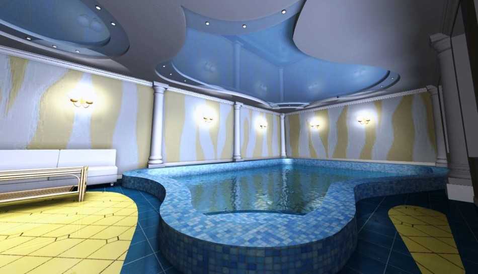 Дизайнеры предложат не одну сотню вариантов, каким может стать потолок в помещении с бассейном.