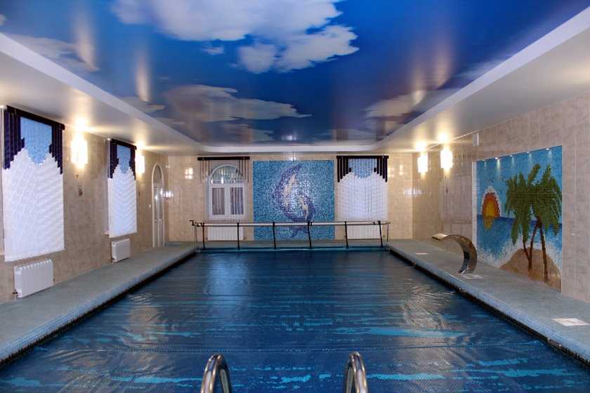 Если идей собственных нет, а предложенные дизайнером варианты не устраивают, можно обратиться к всемирной паутине, и посмотреть, как выглядят натяжные потолки в бассейне, который уже построен в других местах, или был только спроектирован на фото, а потом, адаптировать понравившимися вариант под конкретное помещение.