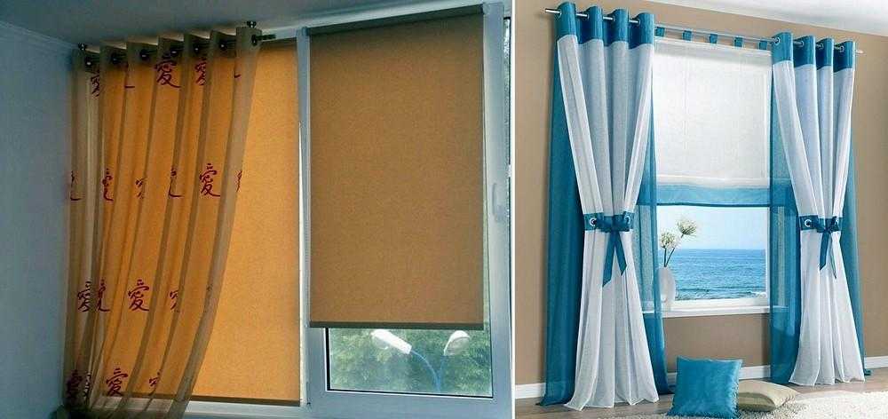 В сочетании с римскими шторами можно применять тюль любой текстуры