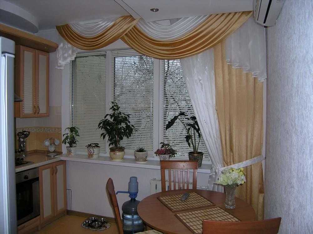 Кухня. Поскольку в кухне гардины подвержены наибольшему загрязнению, материал, из которого они изготовлены, должен легко переносить частые стирки, их длина должна быть уменьшена, а украшения сведены к минимуму.