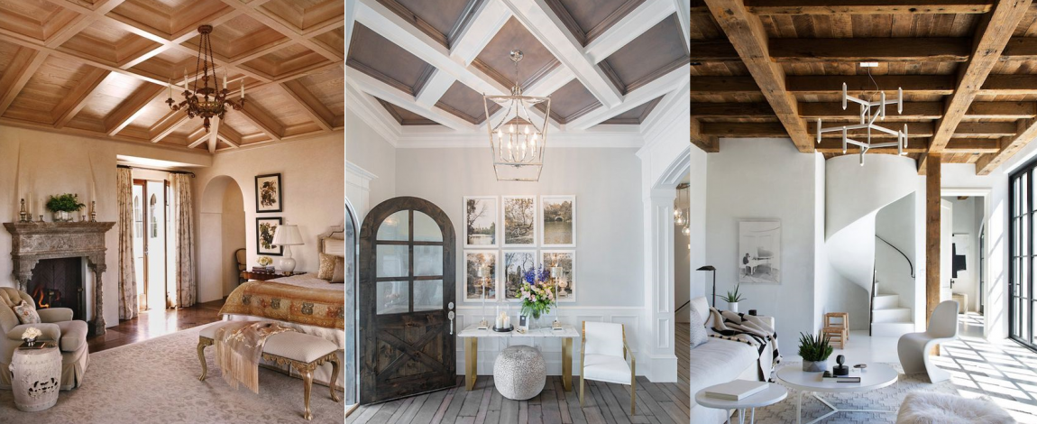 Каменные и деревянные кессонные потолки появились ещё в античности. Такое устройство было продиктовано необходимостью: балки служили частью опорной конструкции. Сейчас оформление выполняет декоративную роль.