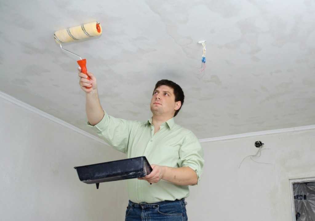 Чтобы обновить потолок, покрашенный водоэмульсионной краской, потребуется значительно больше времени на проведение подготовительных работ. Это связано с тем, что сам процесс удаления предыдущей покраски – довольно трудоемкий, так как слои старой краски практически не растворяются в воде, а потому соскабливать их в полной мере с потолка не предоставляется возможным. Чаще всего эта работа сводится к удалению шпателем участков отслоившейся краски.
