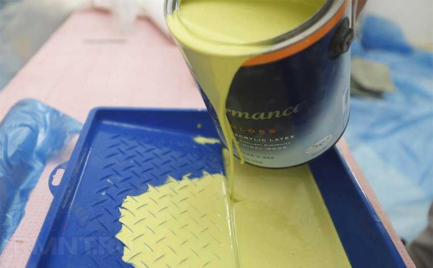 Совет: при окрашивании обоев на стенах придерживайтесь такой «пропорции» — на 1 квадратный метр 500–600 г краски. Помните, что от переизбытка красящего состава обои могут отклеиться.