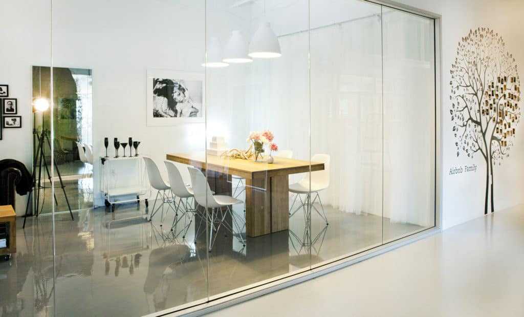 - Организация рабочего пространства, когда его отделяют прозрачные стены.