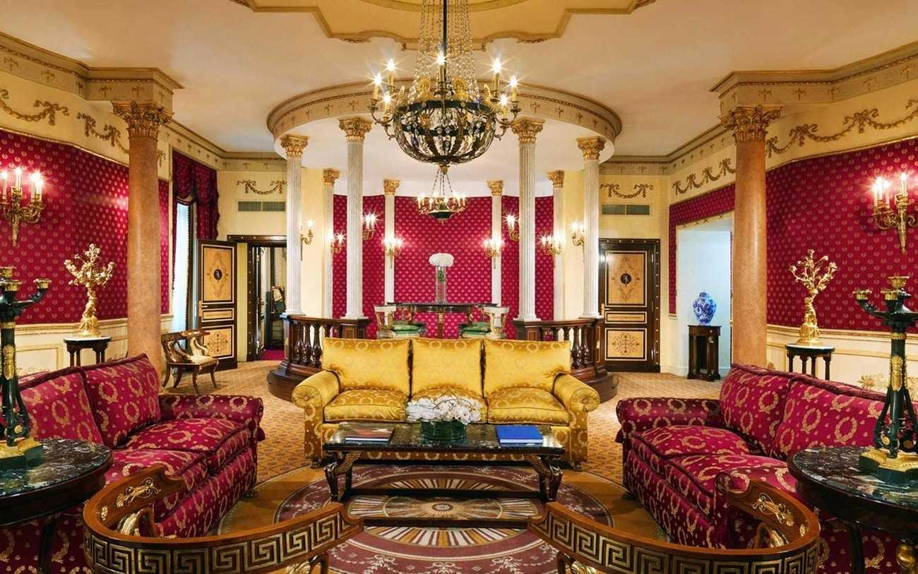 Есть здесь и колонны, нашлось немного места для обоев, присутствует текстиль. Изрядно упрощая, версаль можно назвать королевским барокко или богатым братом венецианского стиля. Все элементы здесь — от обычного пуфика до хрустальной люстры — призваны подчеркнуть роскошь убранства, состоятельность владельцев.