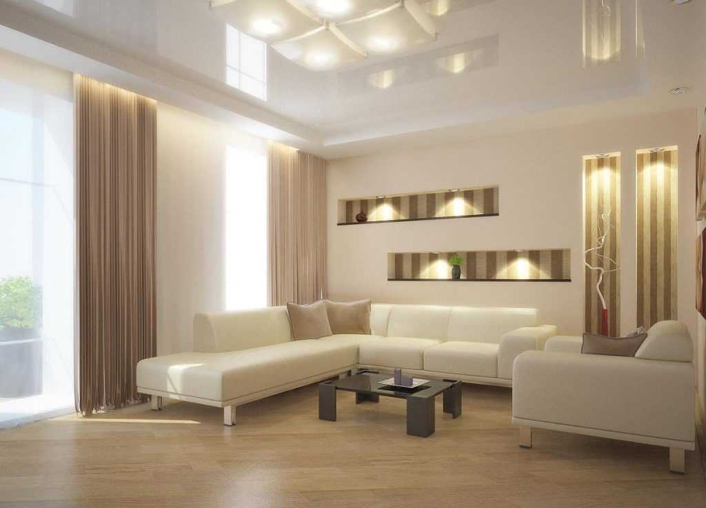 Если вы правильно подберете ткань, цвет натяжного покрытия, установите под карниз оригинальную подсветку, повесите шторы, соответствующие интерьеру, ваша комната станет стильной и интересной.