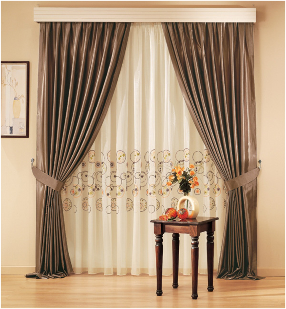 В помещениях с высокими потолками и большими окнами, можно дать волю фантазии, и повесить многослойный вариант. Такая композиция будет центром и украшением комнаты. Это может быть тюль с портьерами и ламбрекеном.