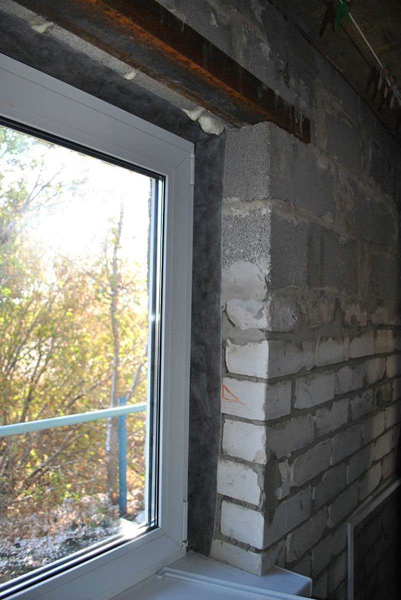 - При монтаже оконных блоков с применением влагоемких способов (при каменной кладке, сплошном бетоне) утепляющий слой должен быть дополнительно защищен пароизоляционным.