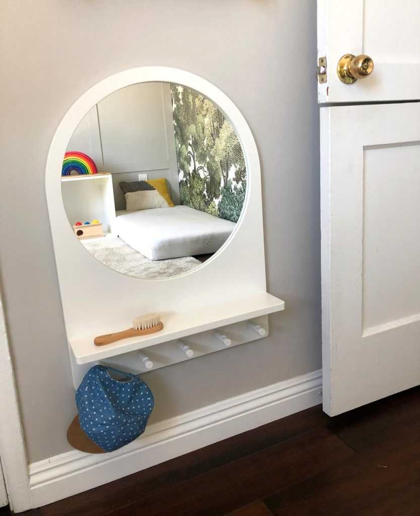 Основным достоинством такого зеркала является то, что оно не занимает много места. Вот только при этом оно отбирает у человека возможность в будущем изменить планировку комнаты. Особенно, если речь идет о зеркальной поверхности, встроенной в стену.