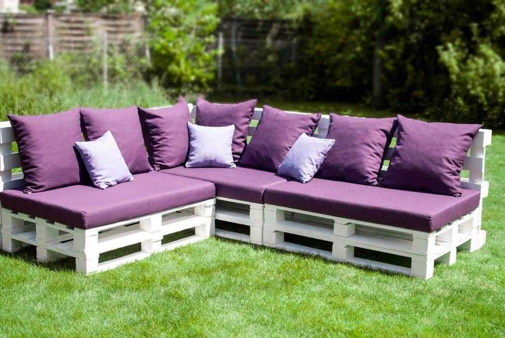 Оригинальный угловой диван из поддонов сделанный своими руками украсит ваш сад