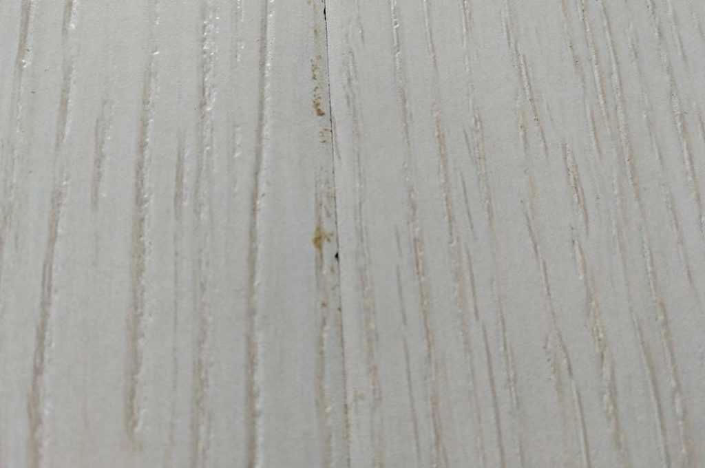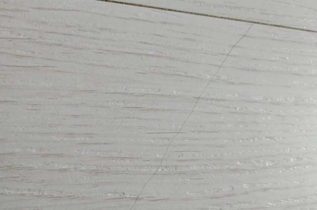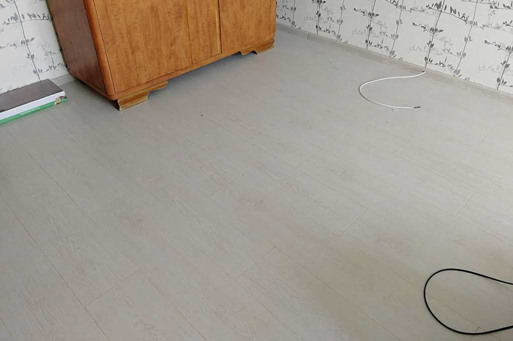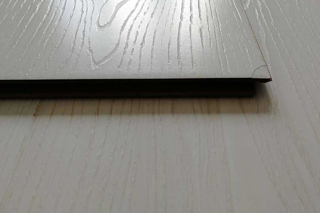 Второй ряд в первый заводить физически тяжеловато, сказывается толщина доски 12 мм и ширина 240 мм. Равномерно простучав по панелям для надлежащего соединения, местами обнаружил перепады высот по фаске. Это не то чтобы очень заметно, но присутствует. Так же были небольшие микросколы вдоль кромки. Но это проблема практически всех ламинированных недорогих полов белого цвета.