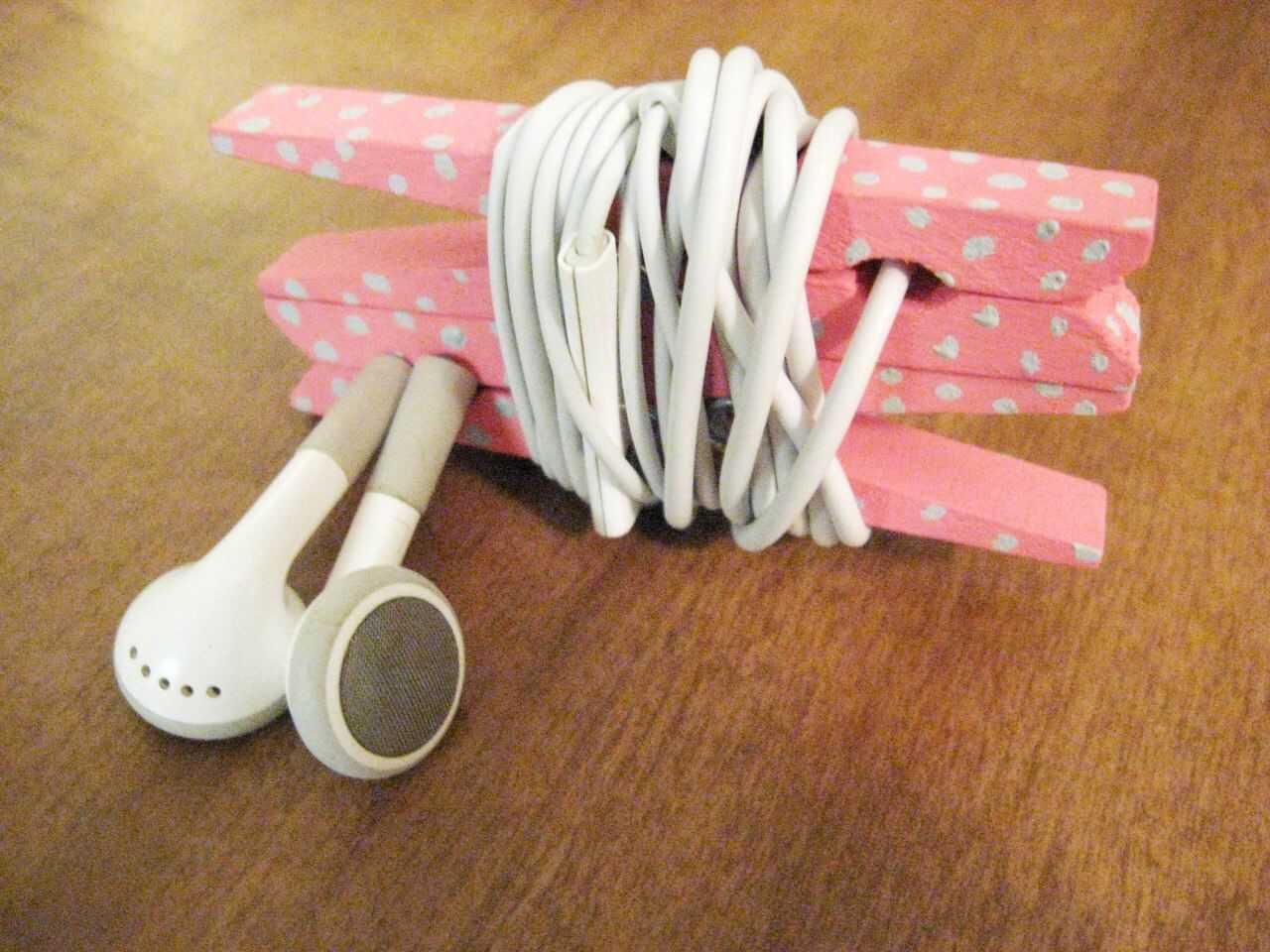 Важно! Примечательно и то, что эти предметы интерьера можно изготовить из практически любого материала, имеющегося под рукой. Использование прищепок для хранения наушников