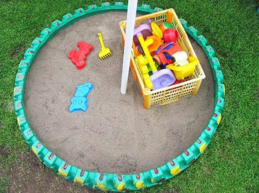 Детвора должна обязательно по достоинству оценить необычную песочницу из покрышки, организованную в виде уложенной плашмя шиной с наполненной внутрь мытым речным песком.