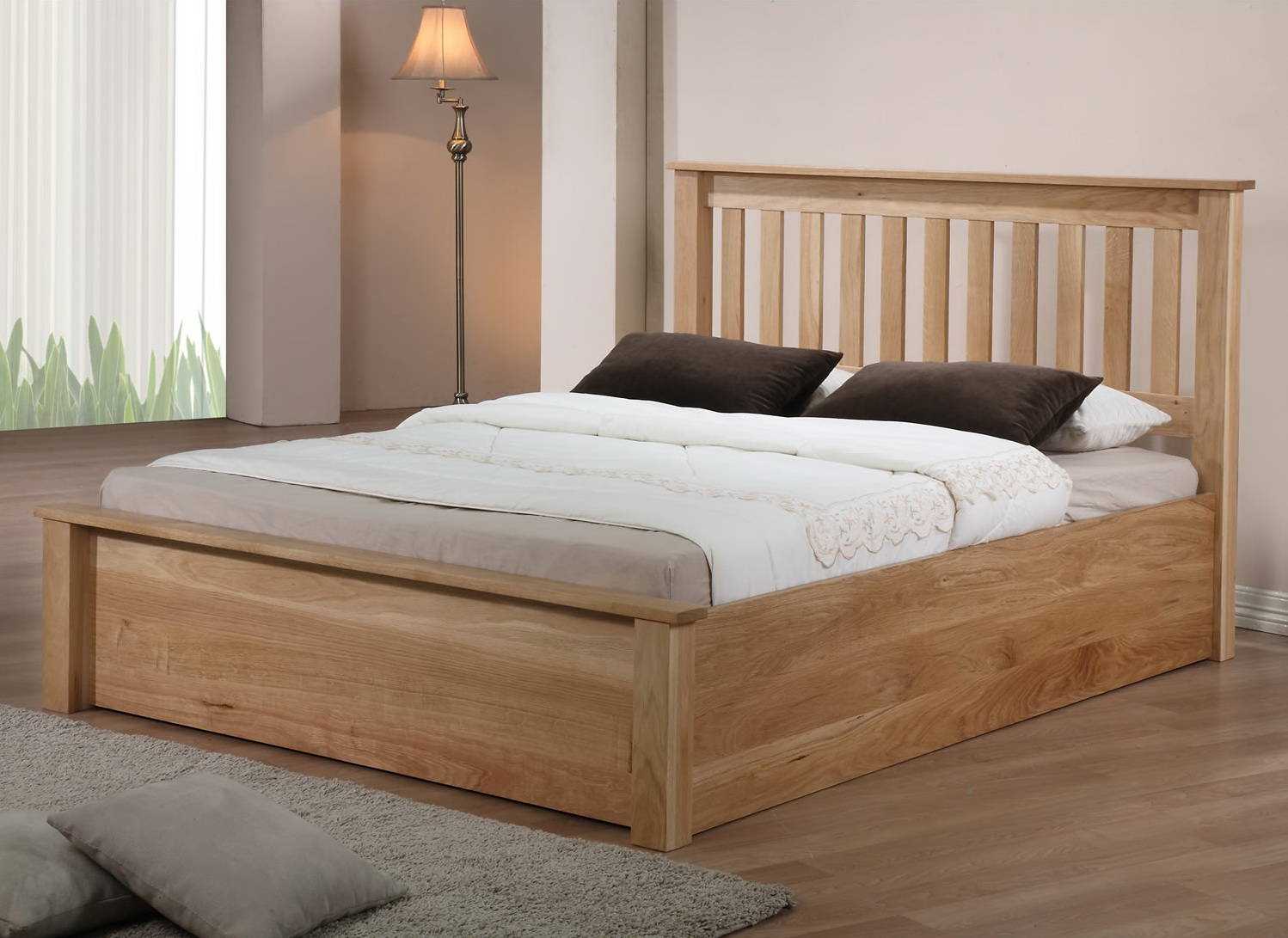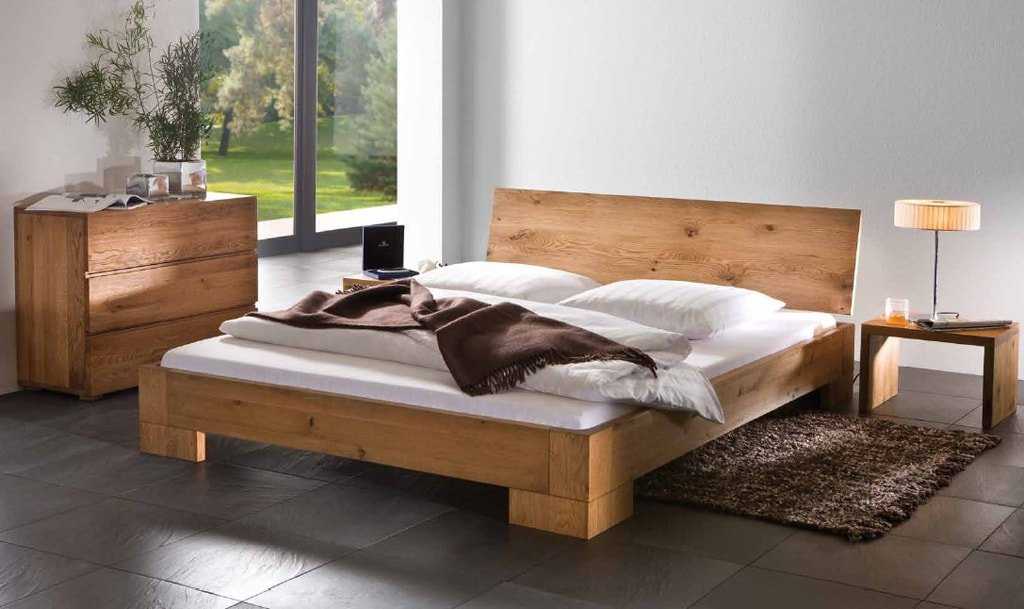 Наиболее часто используется клееный брус, выполненный из сосны. Каждая деталь склеивается из нескольких – из куска массива удаляют сучки, прочие дефекты, после чего разрезают на ламели, соединяя друг с другом при помощи клея. Такая мебель прочна, долговечна, наиболее часто украшается резьбой, роскошной обивкой, что хорошо смотрится в интерьерах классицизма, барокко, ампира. Детали из бруса – толстые, объемные, потому для размещения кровати потребуется немало места.