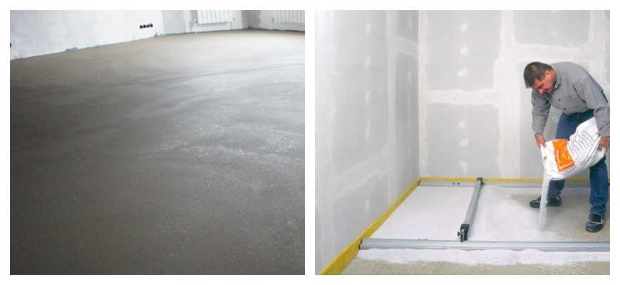 По составу материала бывают цементно-песчаные и гипсовые стяжки.