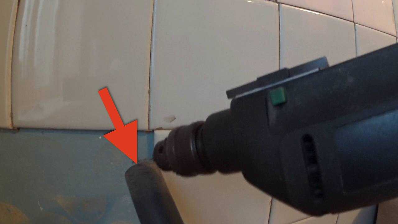 Этот способ временный. Сверлить таким образом нужно очень аккуратно, если резко дёрнется дрель, то можно повредить руку. Рука должна быть защищена толстыми перчатками. Честно, я бы такой способ не стал использовать, больно опасный эксперимент.