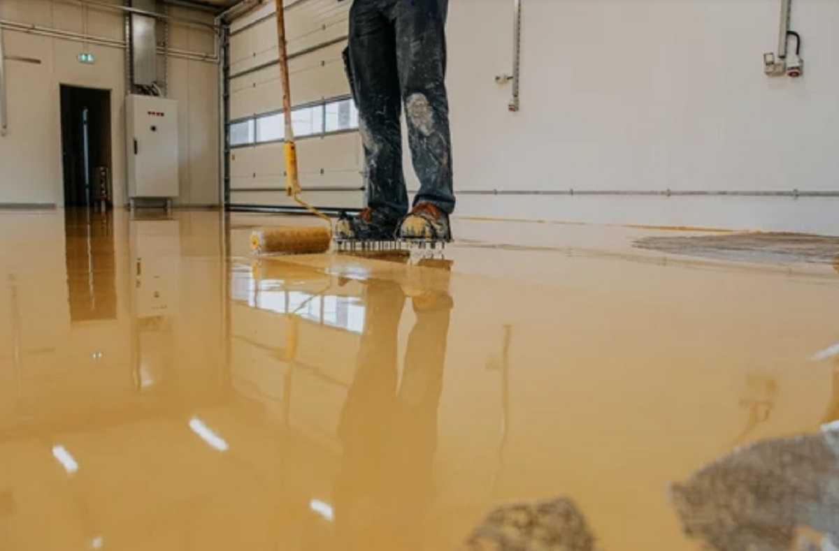 Для формирования слоя применяют специальные материалы для устройства полимерного пола. В качестве основы используют эпоксидную смолу (бесфинол А). В жидком состоянии она заполняет все шероховатости бетонного покрытия, образуя связывающую прослойку. Затем для затвердения добавляется второй компонент – эмульсия полиаминов.