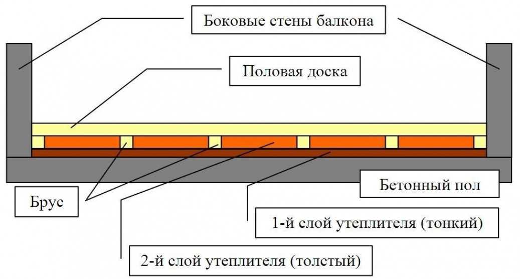 Очищенная поверхность грунтуется (для открытых балконов) или, для защиты от влаги изолируется слоем рубероида, плотной полиэтиленовой пленки (для застекленных лоджий).