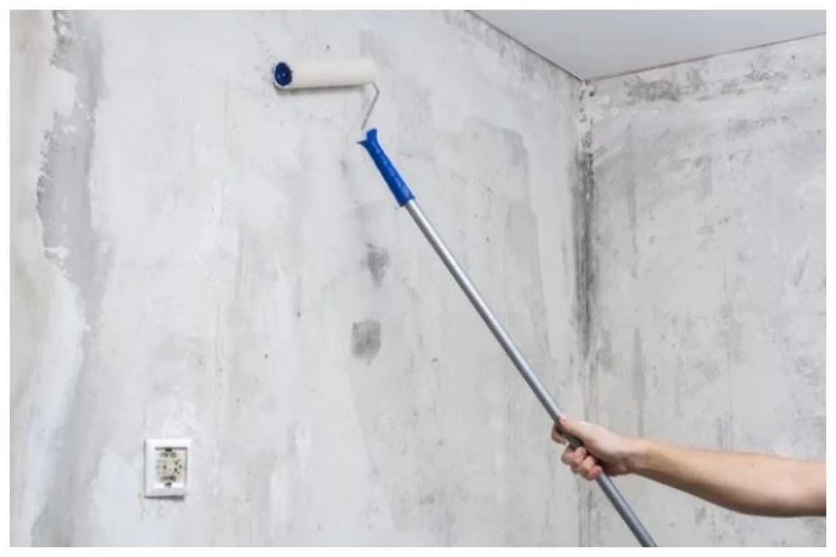 Рекомендуется приобрести валик с телескопической ручкой, чтобы состав можно было наносить на потолок без лестниц или других приспособлений для работы на высоте.