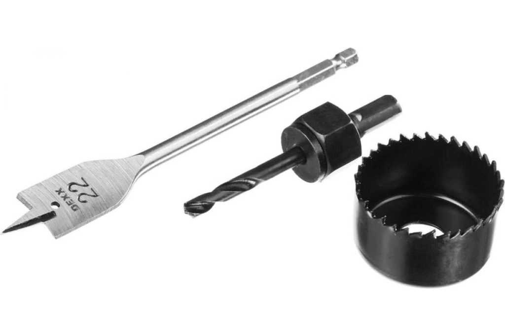 К дополнительным, но не менее важным инструментам относится сверло. Для ручной установки оно обязательно. Его можно взять в отделах с дверной фурнитурой (мебельном, гипермаркете, строительном рынке). Лучше брать не одно, а сразу набор сверл для дерева.