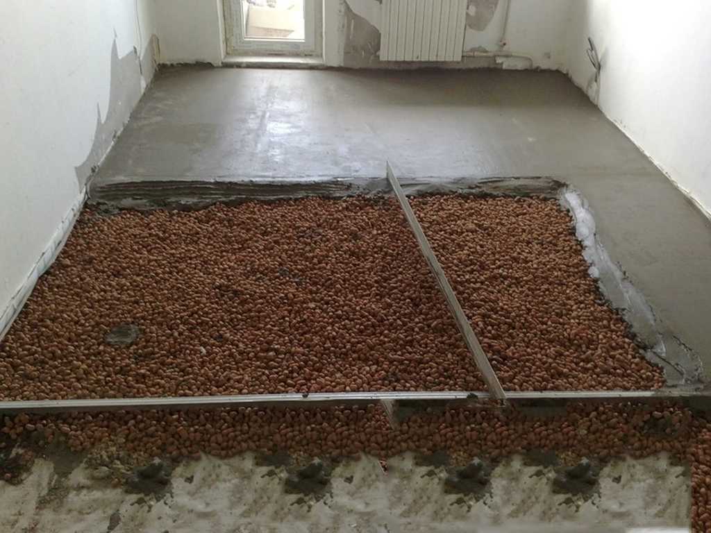 тип используемого раствора. Некоторые материалы позволяют добиться прочного, но очень тонкого основания. Так что смесь, используемая для заливки стяжки, тоже будет влиять на ее толщину. Минимальный расход будет указан на упаковке. Этот пункт применим ко всем современным смесям. Используя обычные проверенные временем составы или изготавливая сухую стяжку, стоит ожидать, что минимальная ее толщина в ряде случаев может достигать и 8-15 см. Порой можно пойти на хитрость – использовать в качестве подсыпки керамзит, который позволит добиться нужного уровня, но при этом снизить массу стяжки и расход бетонной смеси;