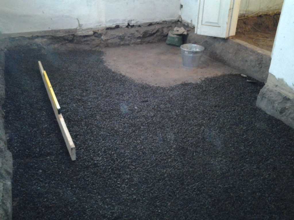 Если полы укладываются на грунте, то работать можно лишь при оттаивании. Если поверхность грунта достаточно слабая, требуется замена либо дополнительное укрепление. Укреплять рекомендуется щебнем с фракцией 40-60 мм. При этом прочность должна быть не менее, чем 200 кгс/м2.