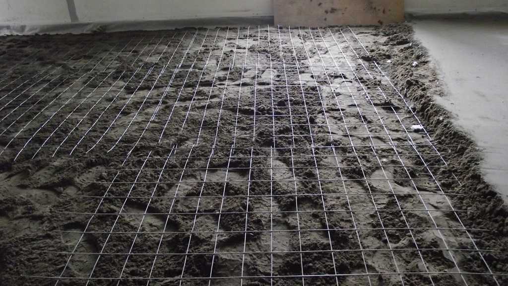 - Монтируем стяжку, при этом минимальный слой бетона должен быть не менее 2 см.