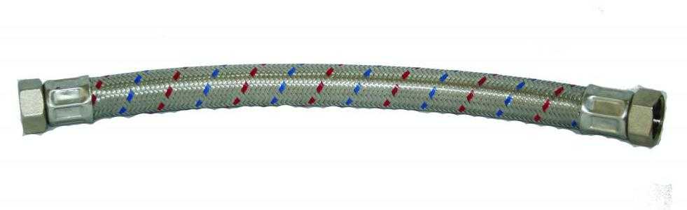 Подводка из нержавеющей стали. Такие модели наиболее популярны и способны выдержать до 10 лет эксплуатации при давлении до 10 атмосфер и температуре до +95 °C. Технические характеристики нержавеющей стали позволяют применять оплетку из нее практически во всех узлах забора воды.