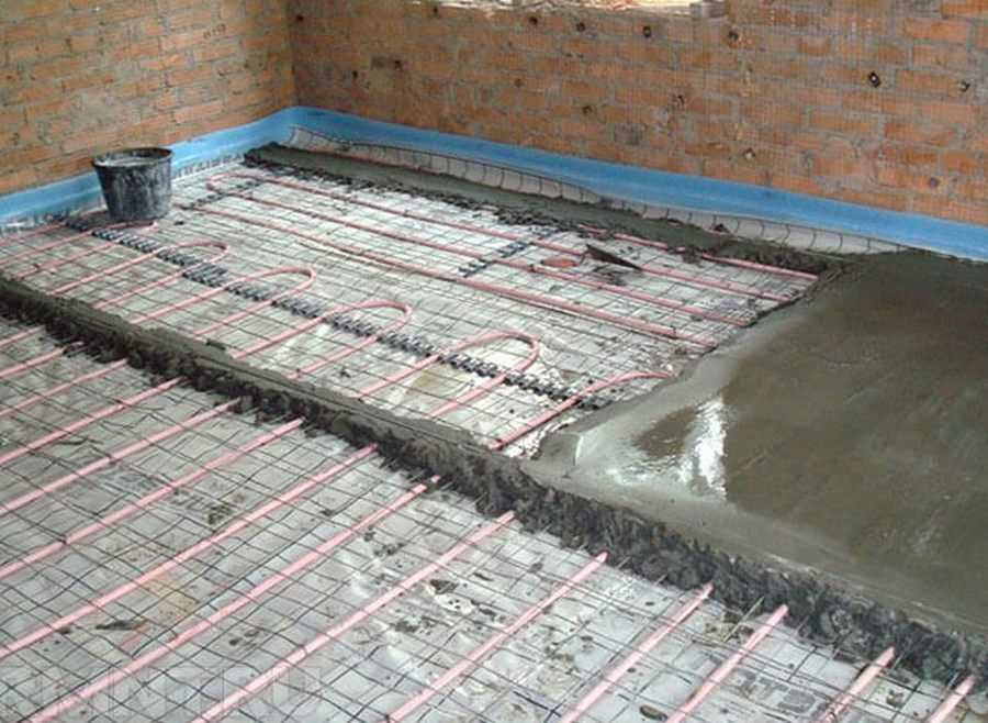 Стяжку для водяного теплого пола выполняют после прокладки труб, как на фото. При выполнении стяжки необходимо в точности следовать рекомендациям специалистов.