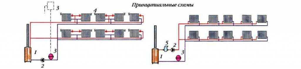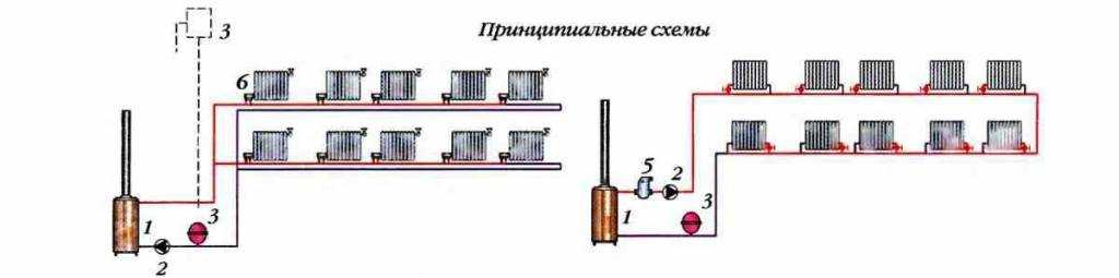 Схемы систем отопления с двутрубными горизонтальными разводками