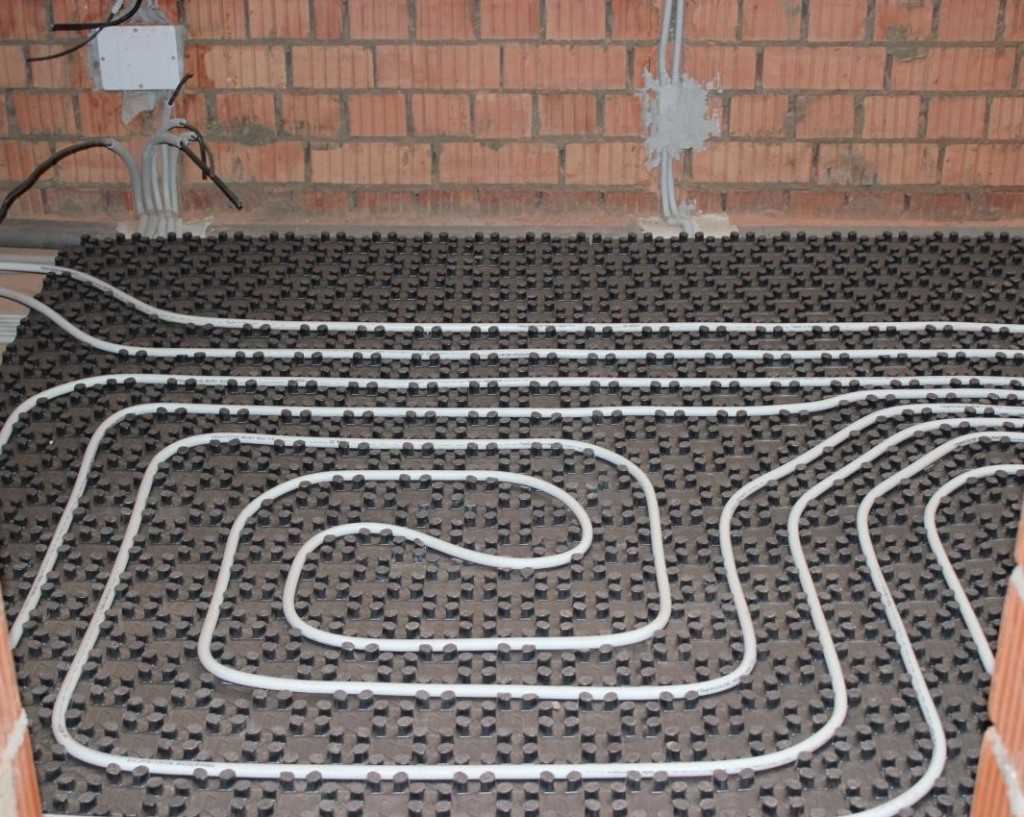 Также на этапе подготовки укладывают теплоизоляцию. Ее плотность остается в пределах 35 кг/куб.м. Последним подготовительным этапом становится укладка арматурной сетки. Она послужит основанием для креплений контура и поможет равномернее распределять тепло. Рекомендуется использовать специальные панели для укладки труб для водяного пола, значительно облегчающие процесс монтажа.