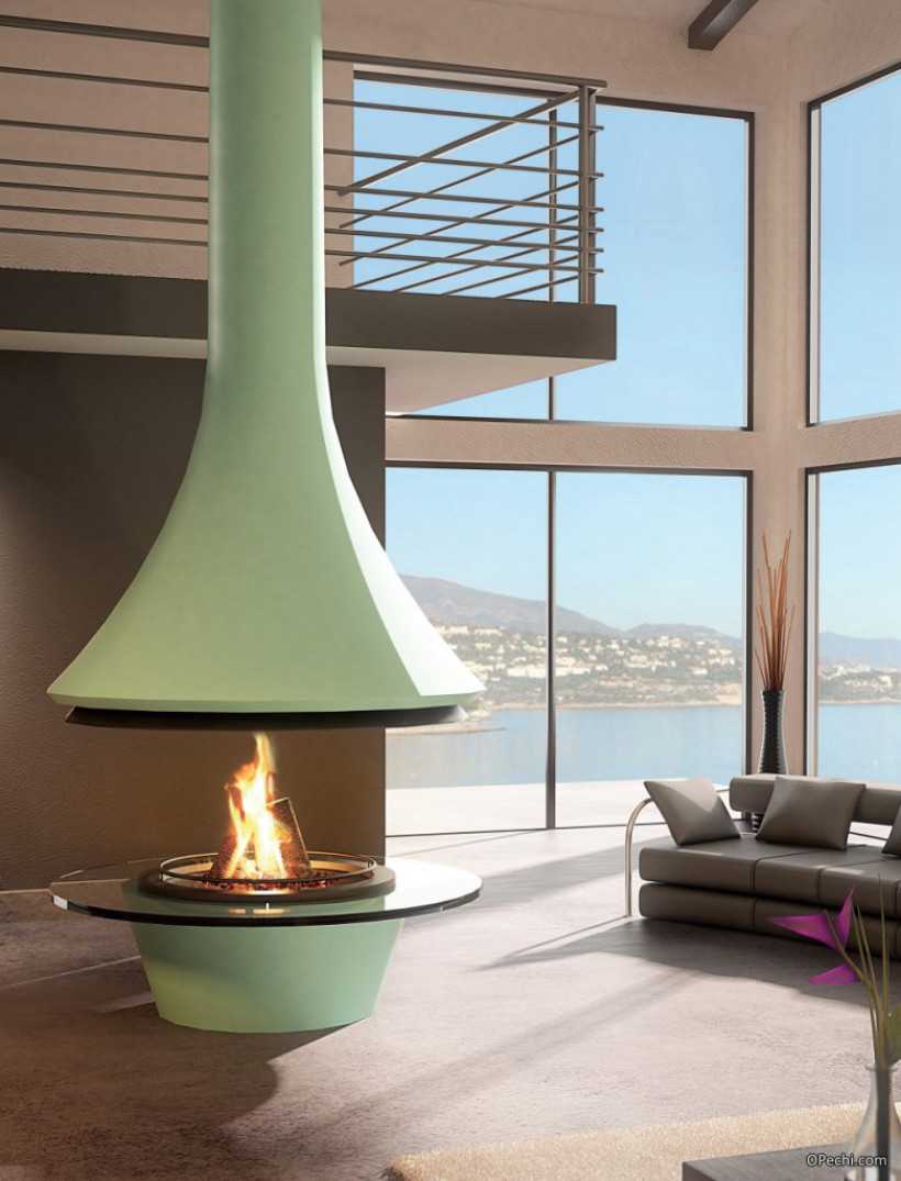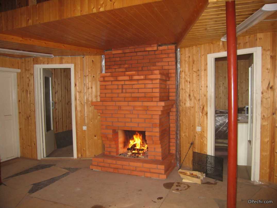 Открытый — расположен посредине помещения, его топливник открыт со всех сторон. Другие названия — швейцарский, альпийский.