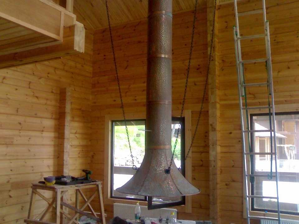 Металлический очаг, как и классический, из кирпича, требует наличия дымохода. Все перекрытия дома, через которые проходит труба дымохода, должны быть капитально изолированы. Также изолируется стена дома, в непосредственной близости, от которой расположен металлический очаг и к которой крепится дымоходная труба.